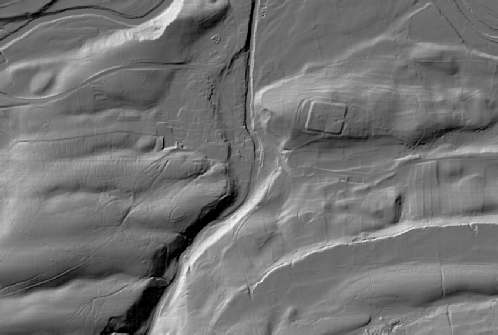 Bainbridge Univallate hillfort with the later Roman Fort situated on the hill to the northeast. LiDAR Composite DTM -