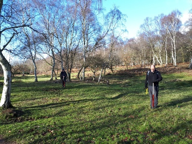 Recording a possible military pit on Budby South Forest, in the Sherwood Forest National Nature Reserve. © Mercian Archaeological services CIC.
