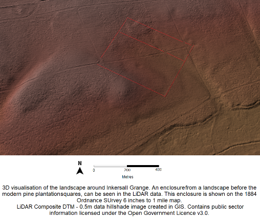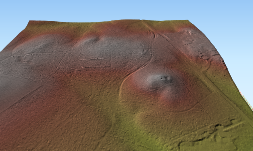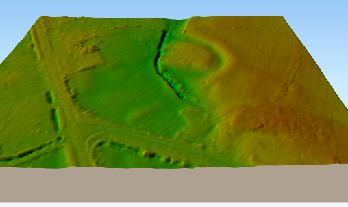 The LiDAR data set below alongside coverage at 1m, 2m and 0.25m resolution is being used to identify potential archaeological features. The aim is to ground-