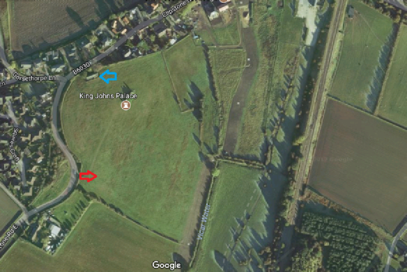 Follow the B6030 into Kings Clipstone. Drive through the centre of the village and follow the road as it rises steeply to the left. At the top of the hill turn into the entrance to Castle Field via a farm gate.